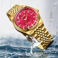 ✨ Απόλυτη κομψότητα και πάθος! Το χρυσό μπρασελέ και το κόκκινο καντράν δημιουργούν έναν εκρηκτικό συνδυασμό που μαγνητίζει τα βλέμματα. Αδιάβροχο και φτιαγμένο από ανοξείδωτο ατσάλι – πολυτέλεια που διαρκεί! 🔥❤️